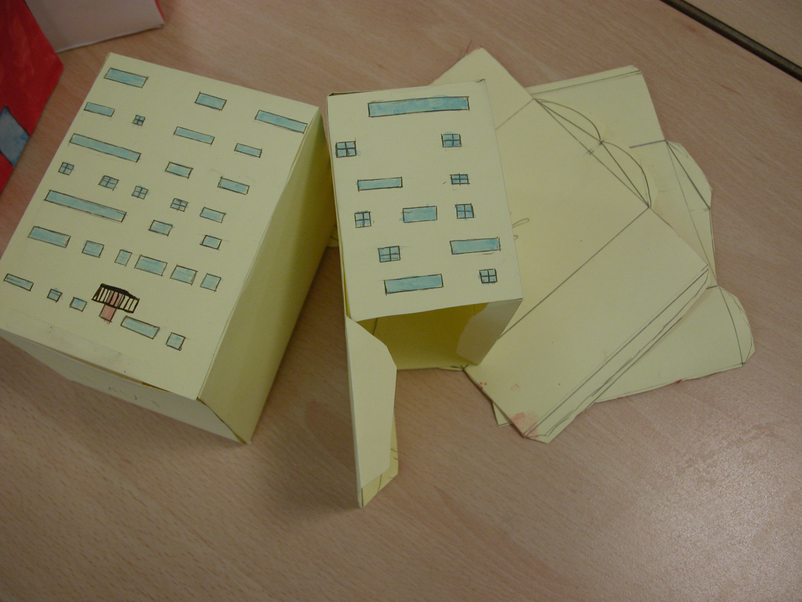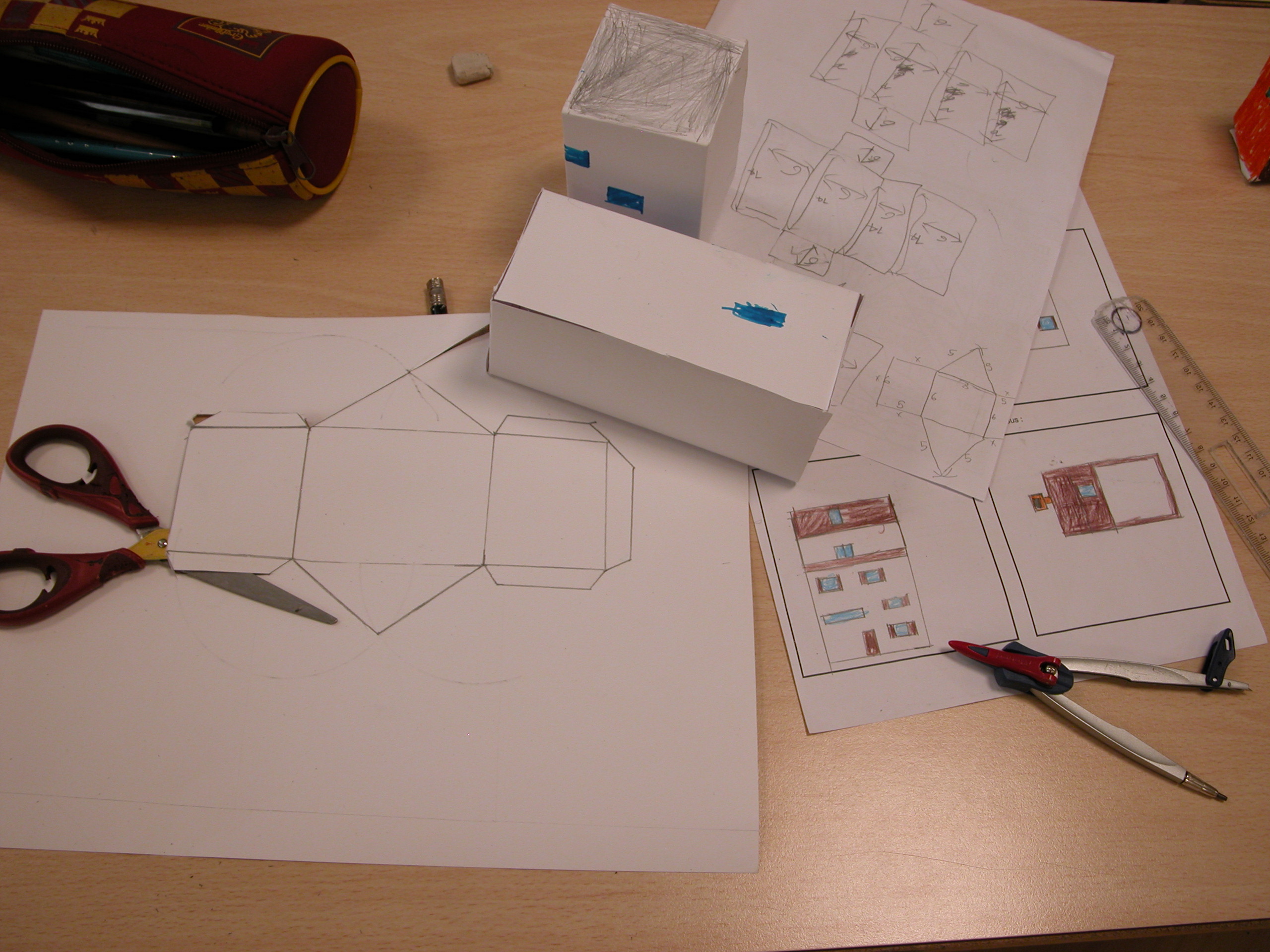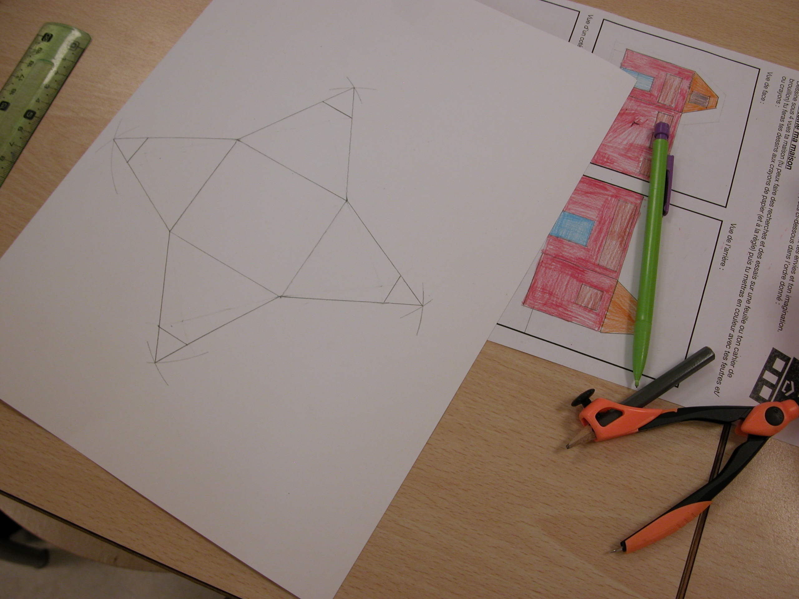 - préparer un croquis de ses patrons (brouillon) pour construire sa maison en volume avec une échelle de 1m = 1cm