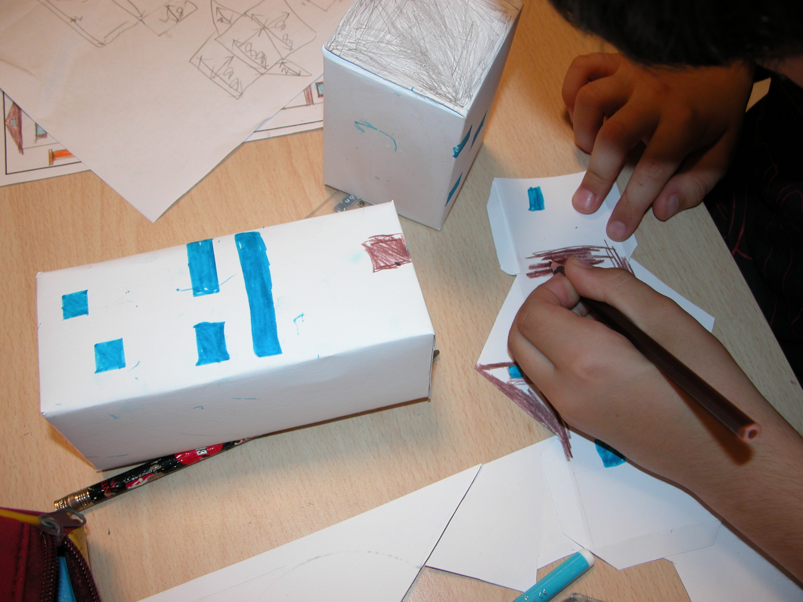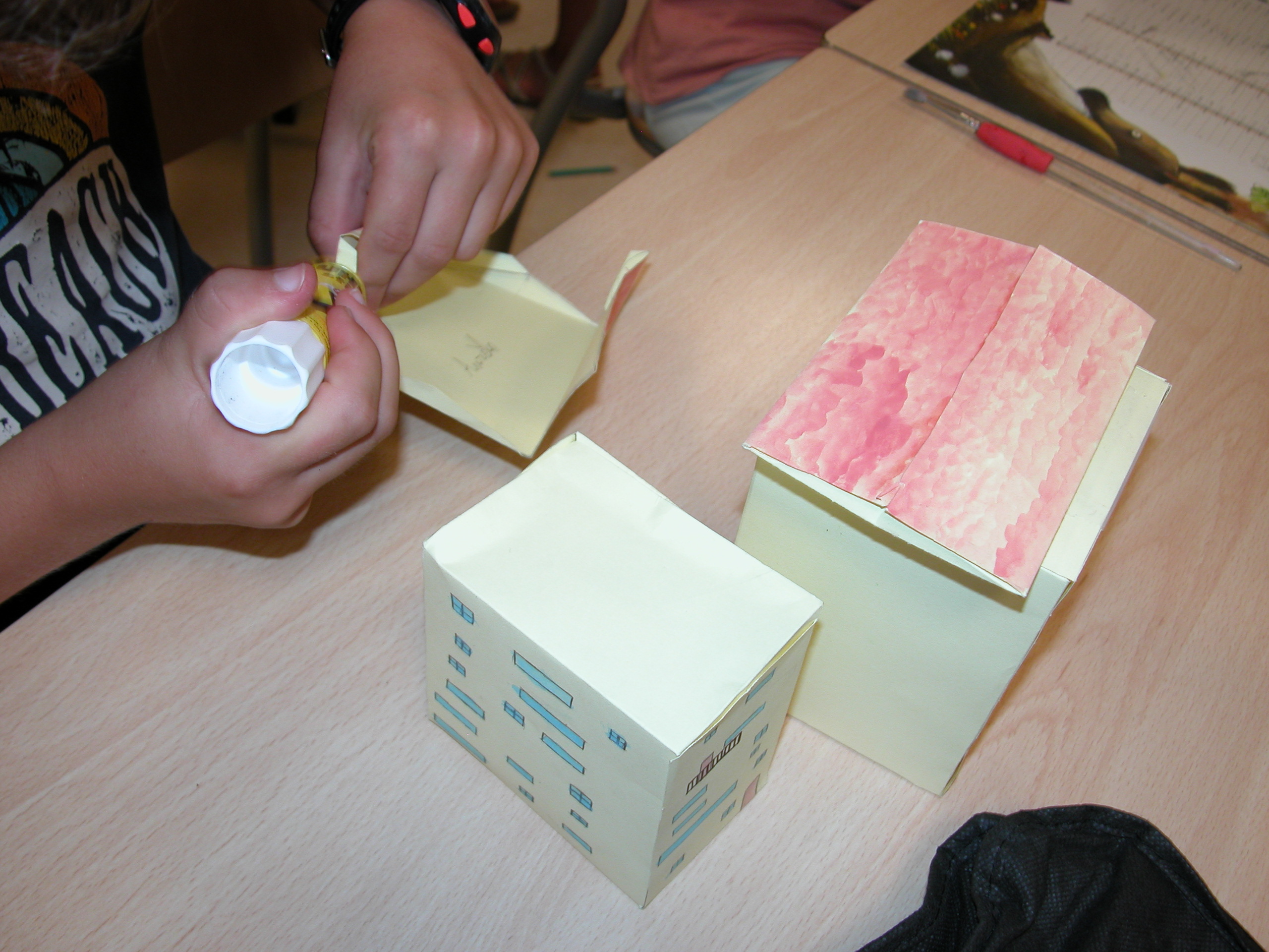 - tracer ses patrons, découper, mettre en couleur et monter ses volumes, construire sa maison