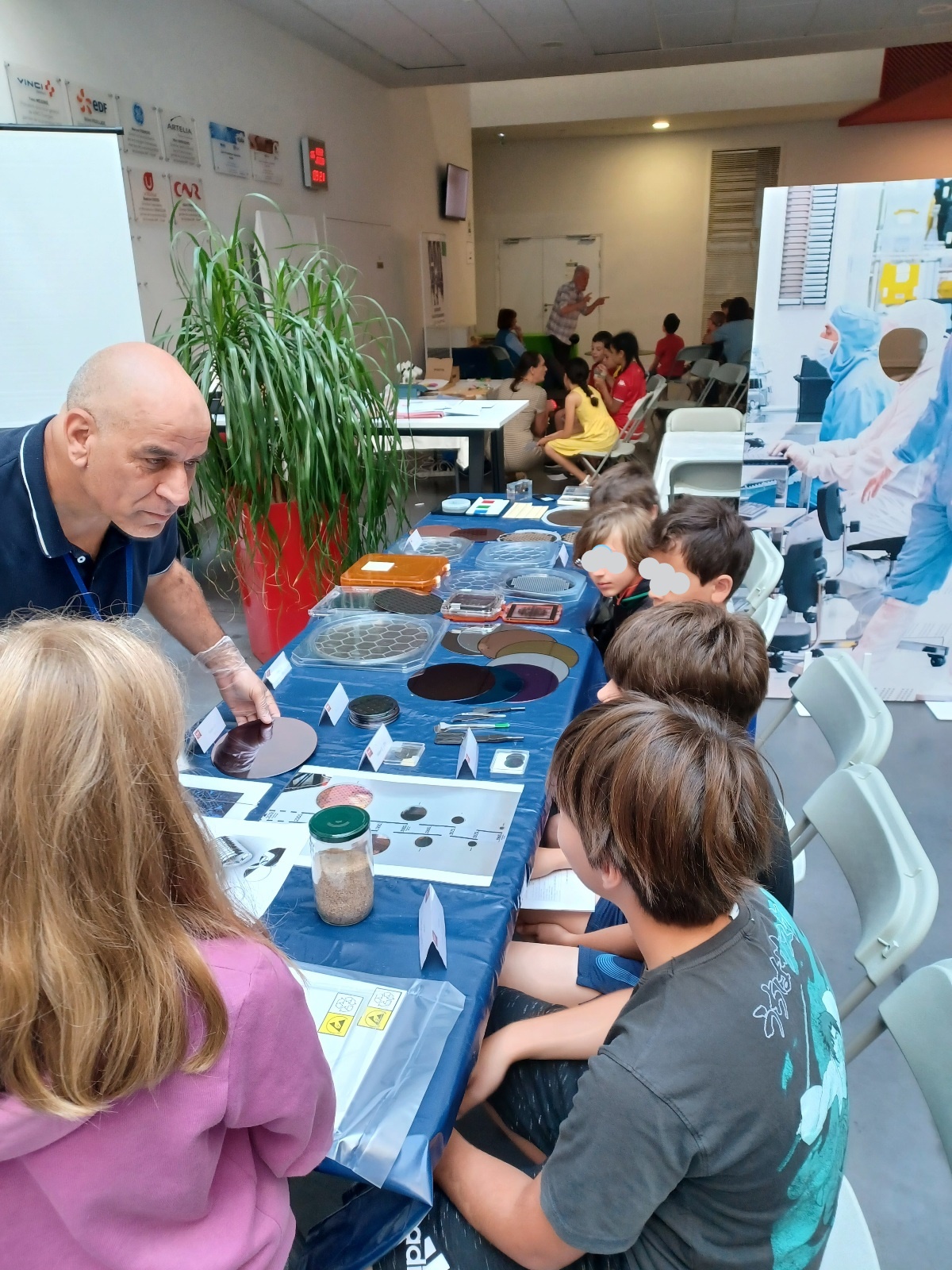 Rassemblant différents acteurs scientifiques (le CEA, le Palais de la découverte, les Eaux de Grenoble, l'Institut de recherche archéologique préventive...), cet évènement a été l'occasion pour les enfants de découvrir comment est fabriquée une puce micro-éléctronique, comment fonctionne le système solaire, comment l'eau peut bouillir à 20°C, comment explorer le zen à travers un atelier d'art plastique....
