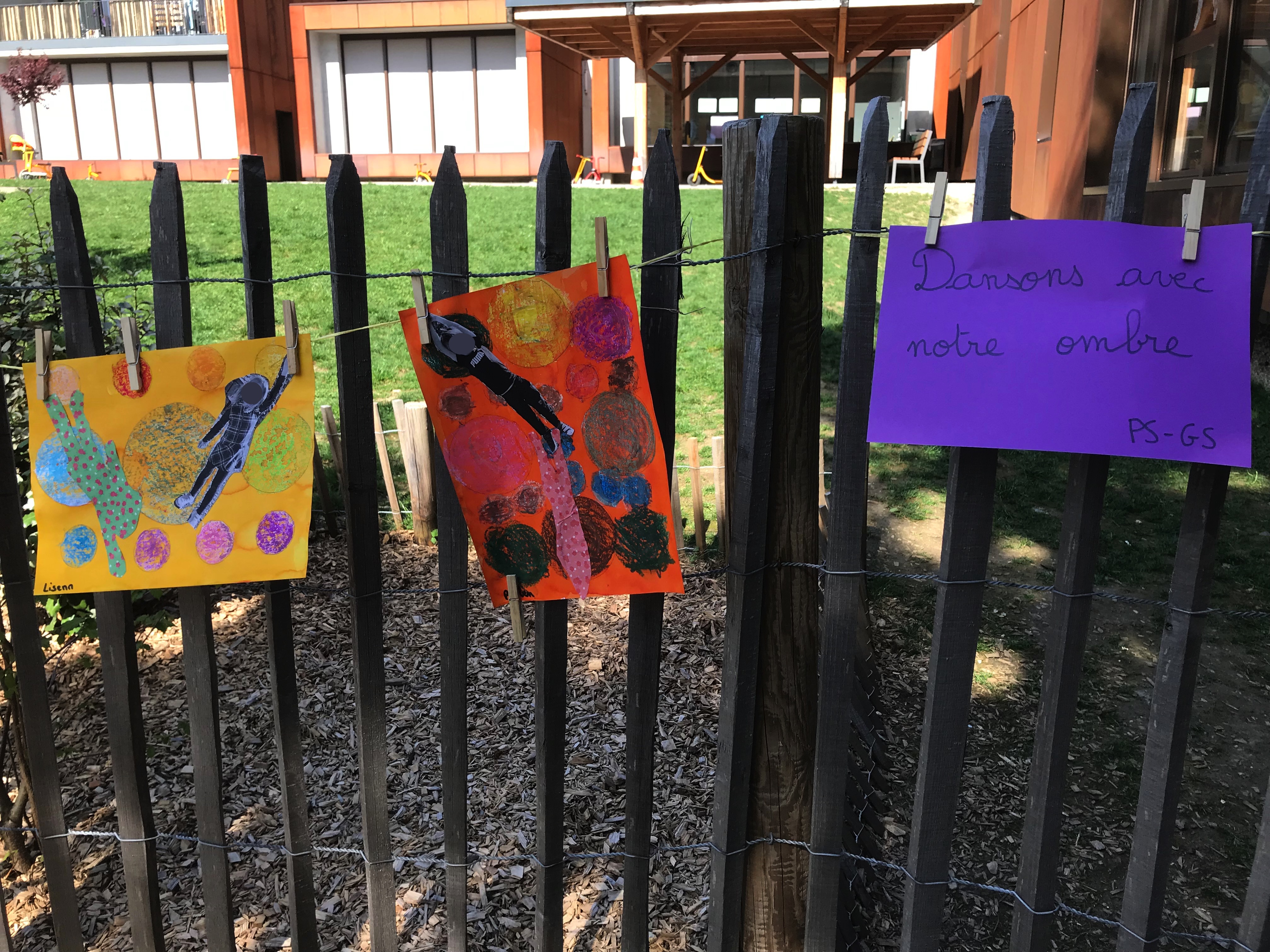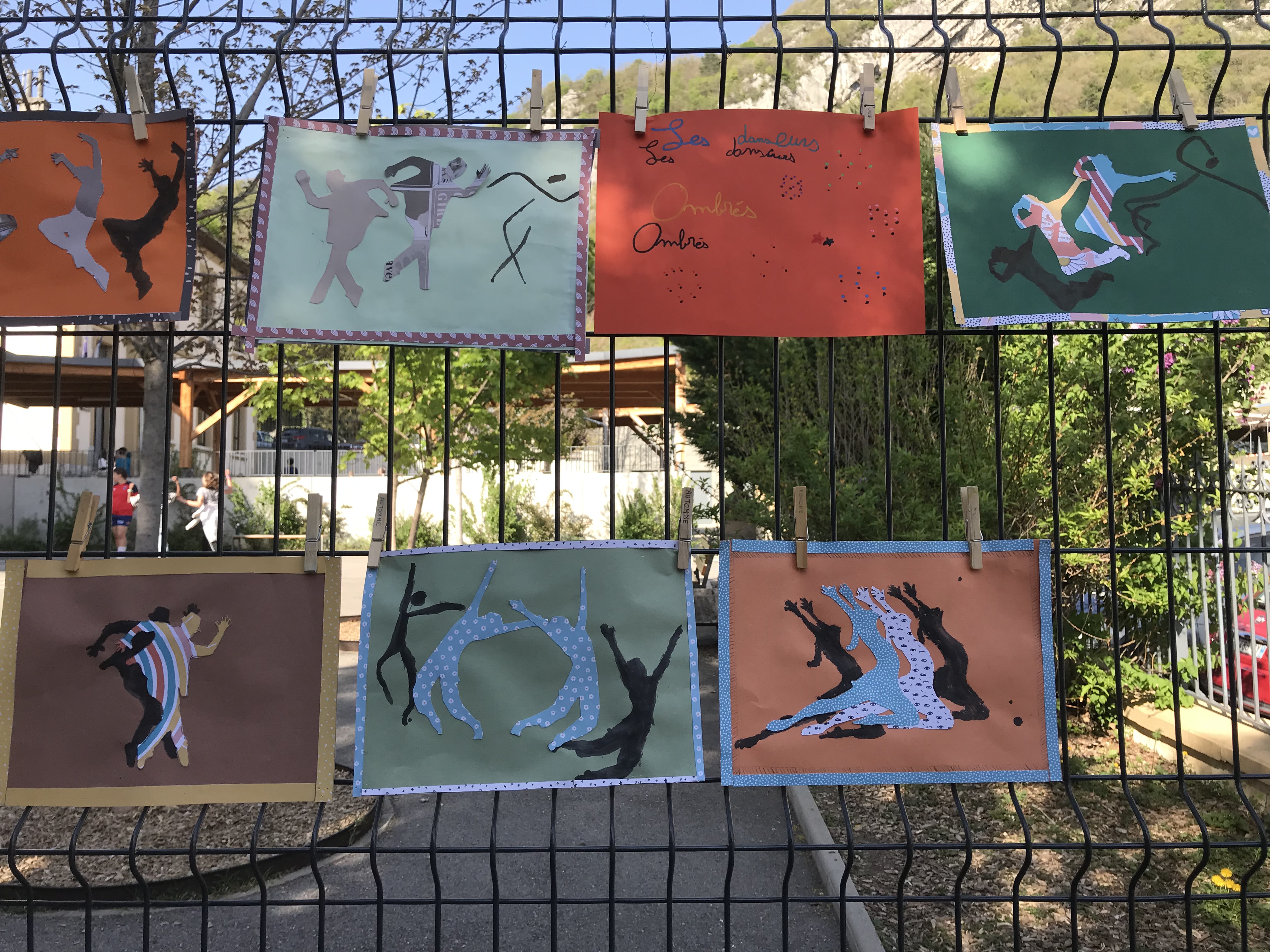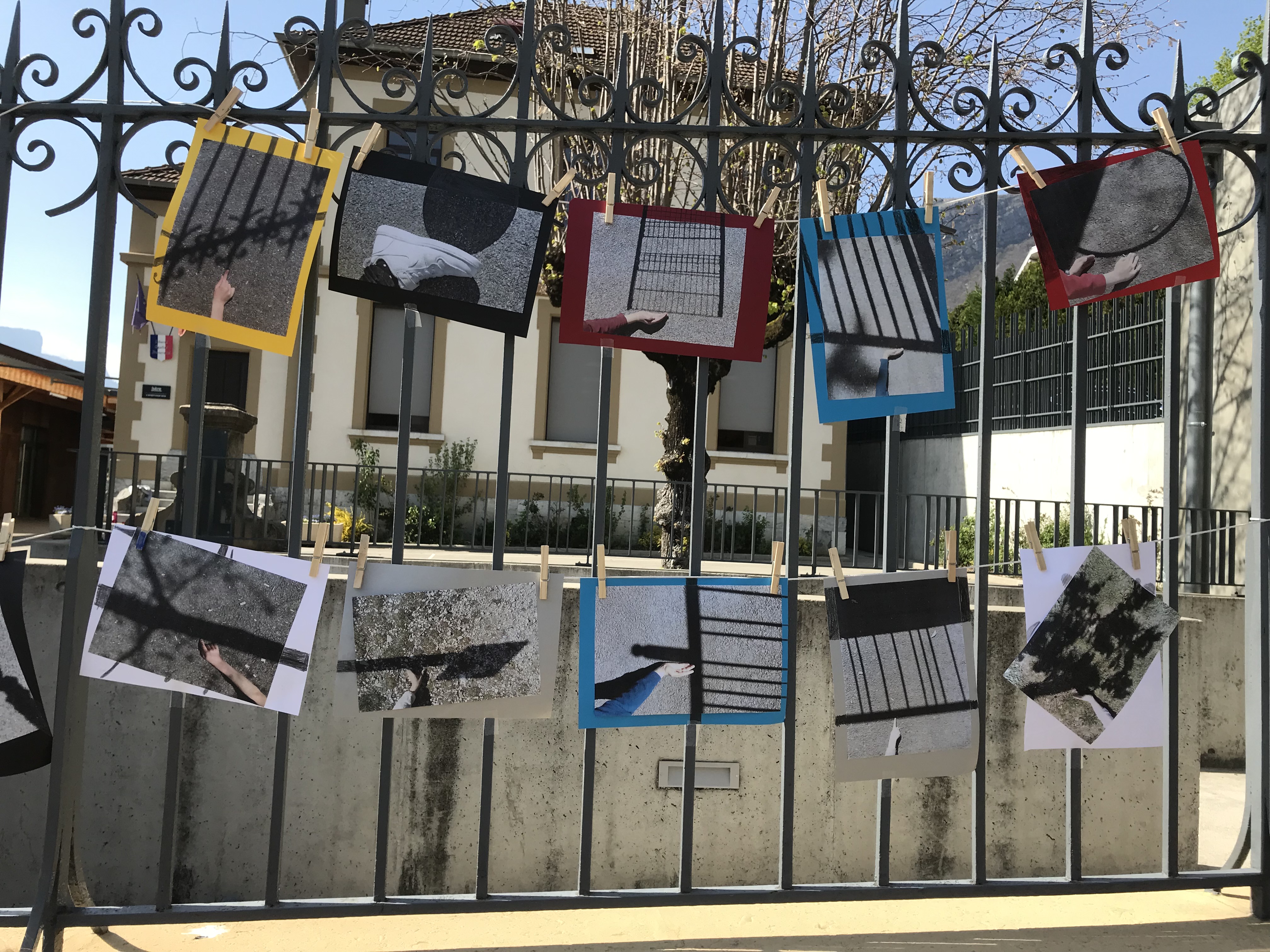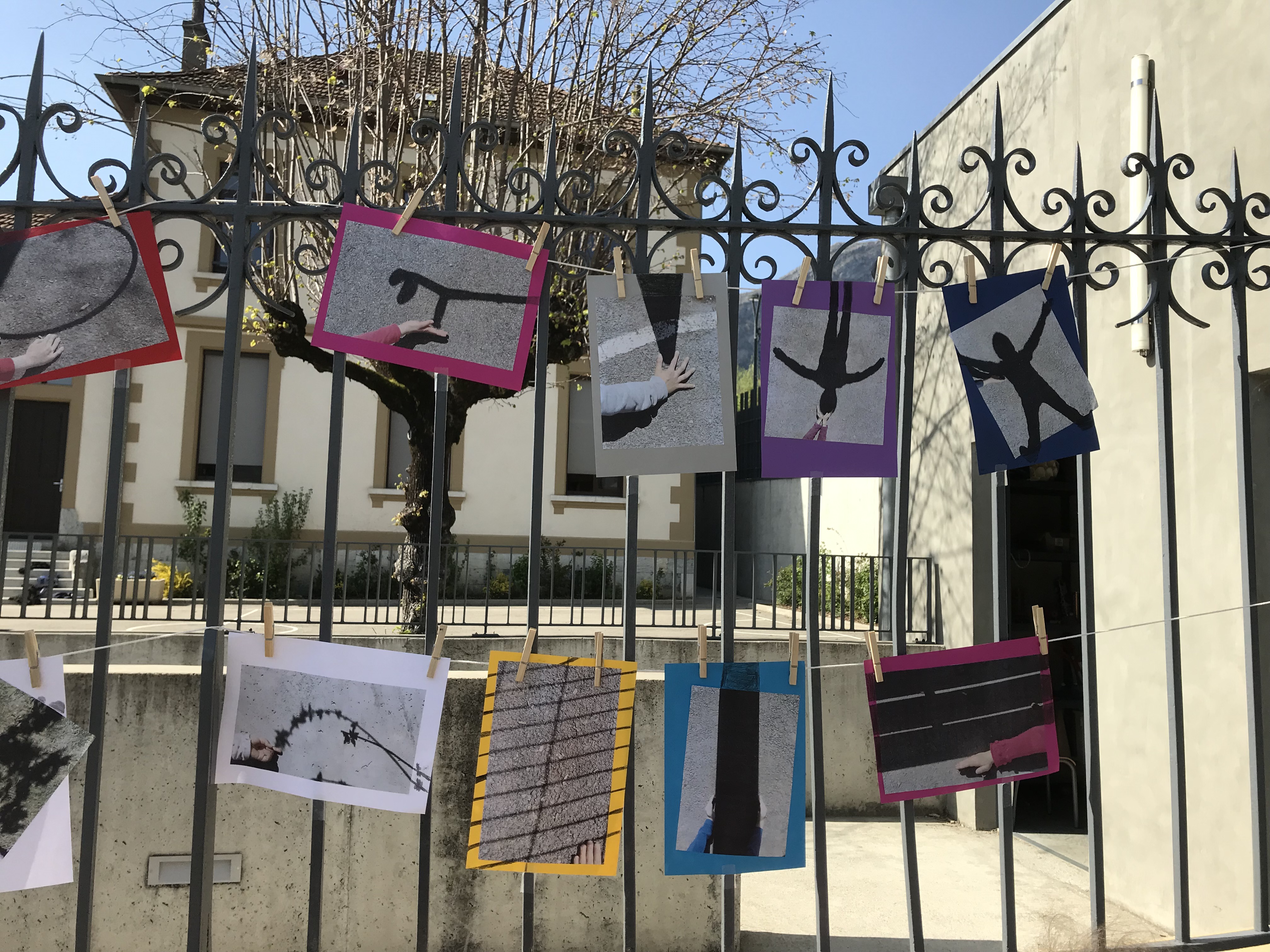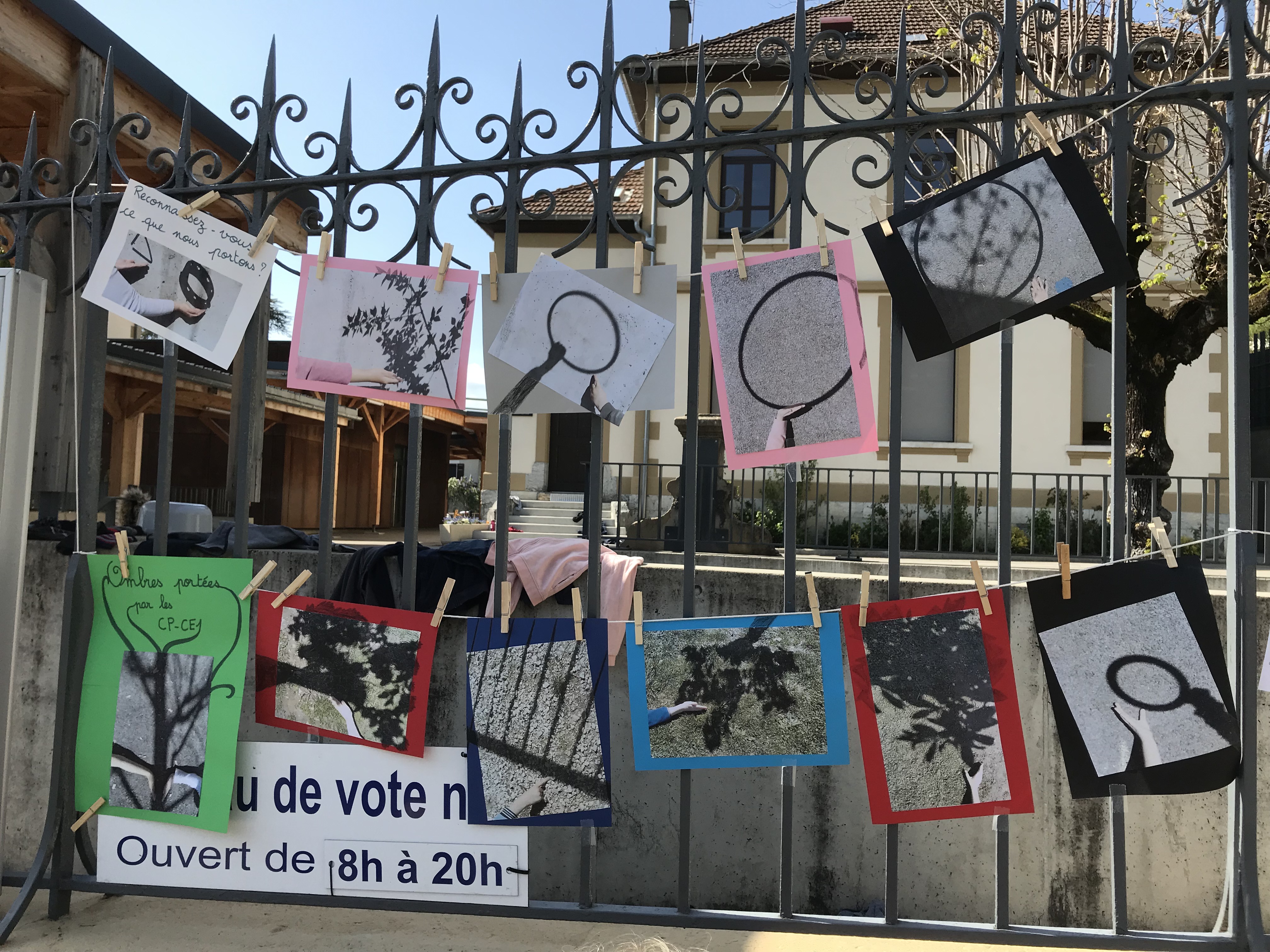 Le 14 avril 2022, toute l'école a exposé sa grande lessive sur le thème "Ombres portées".