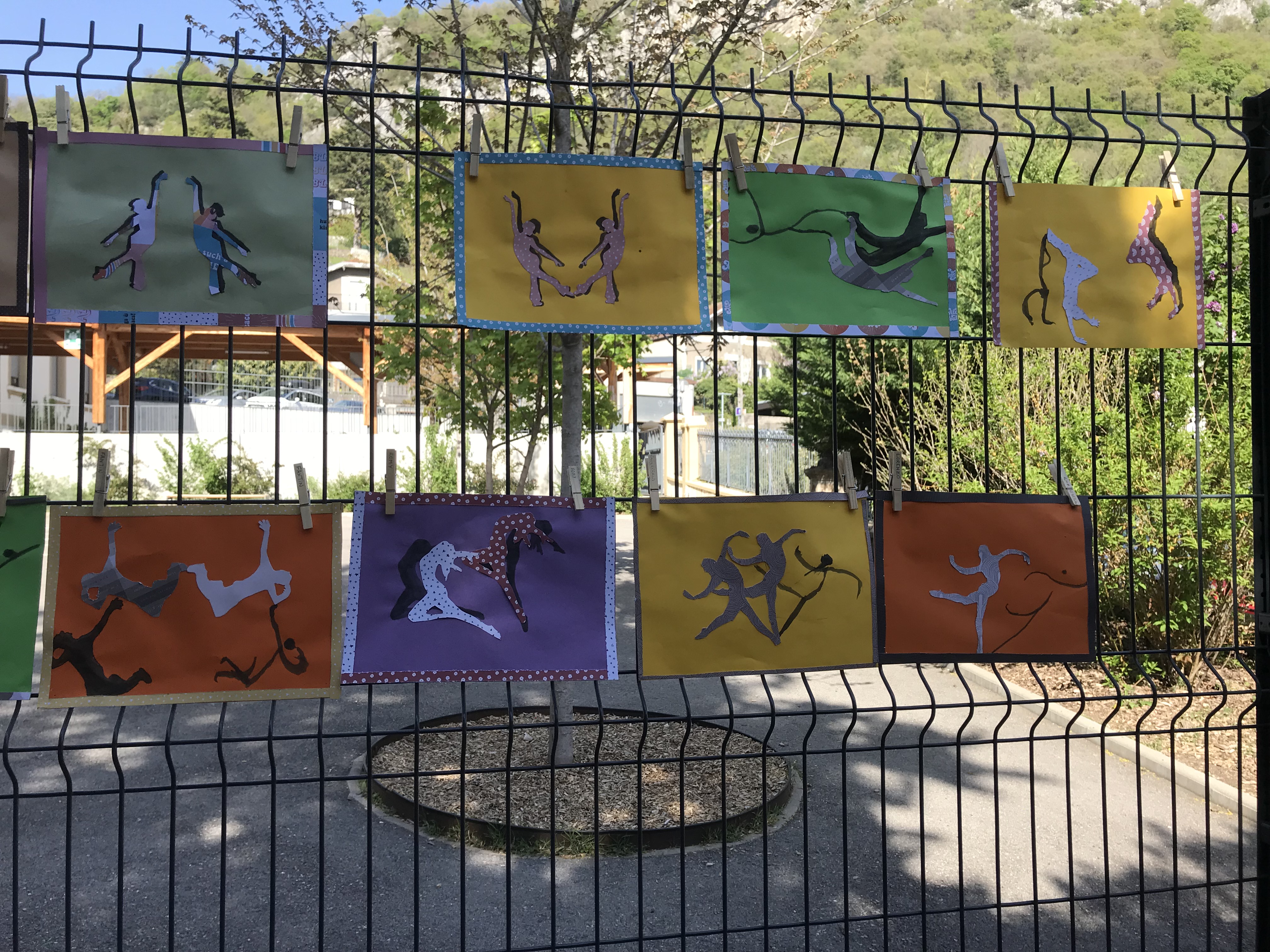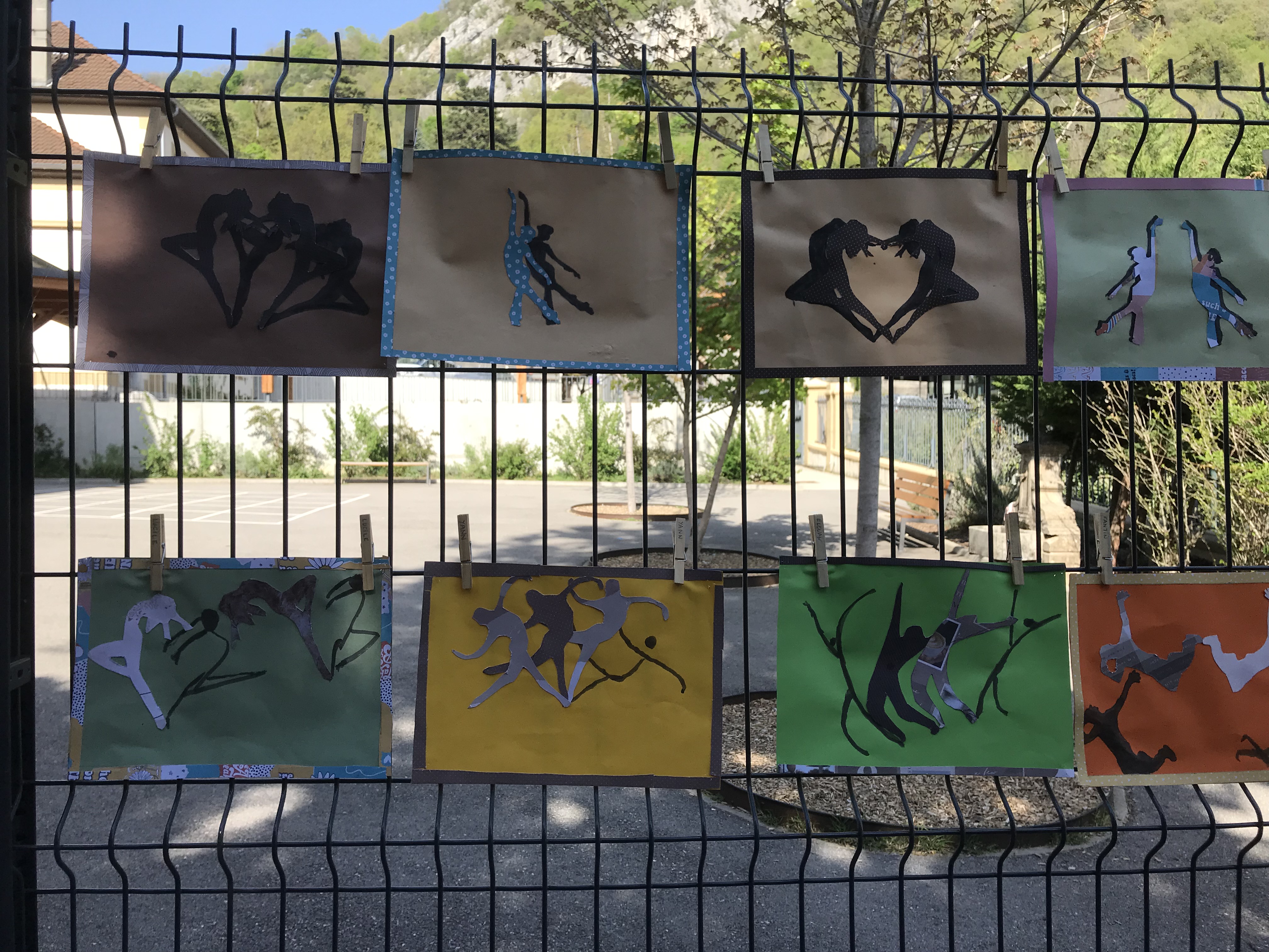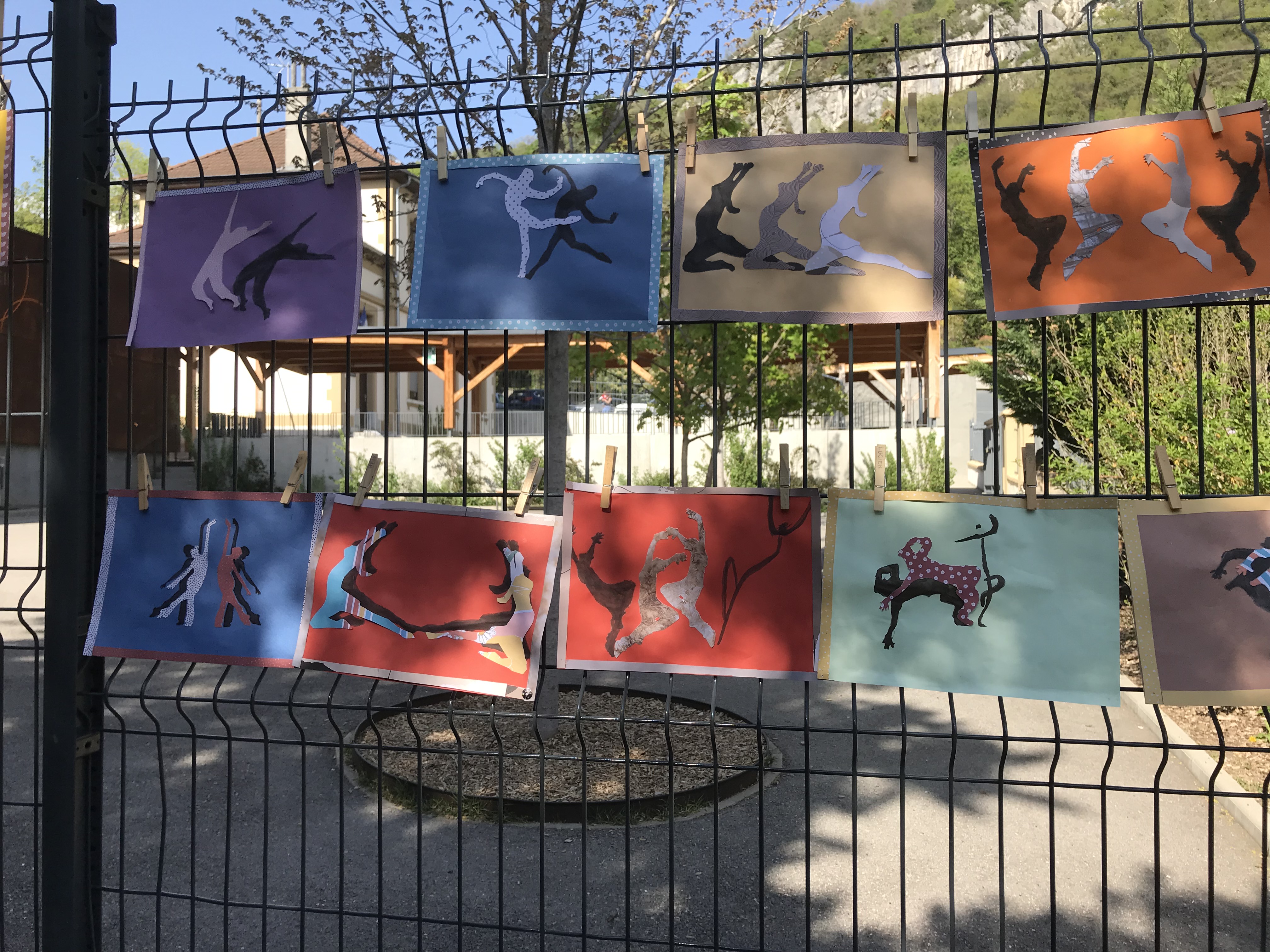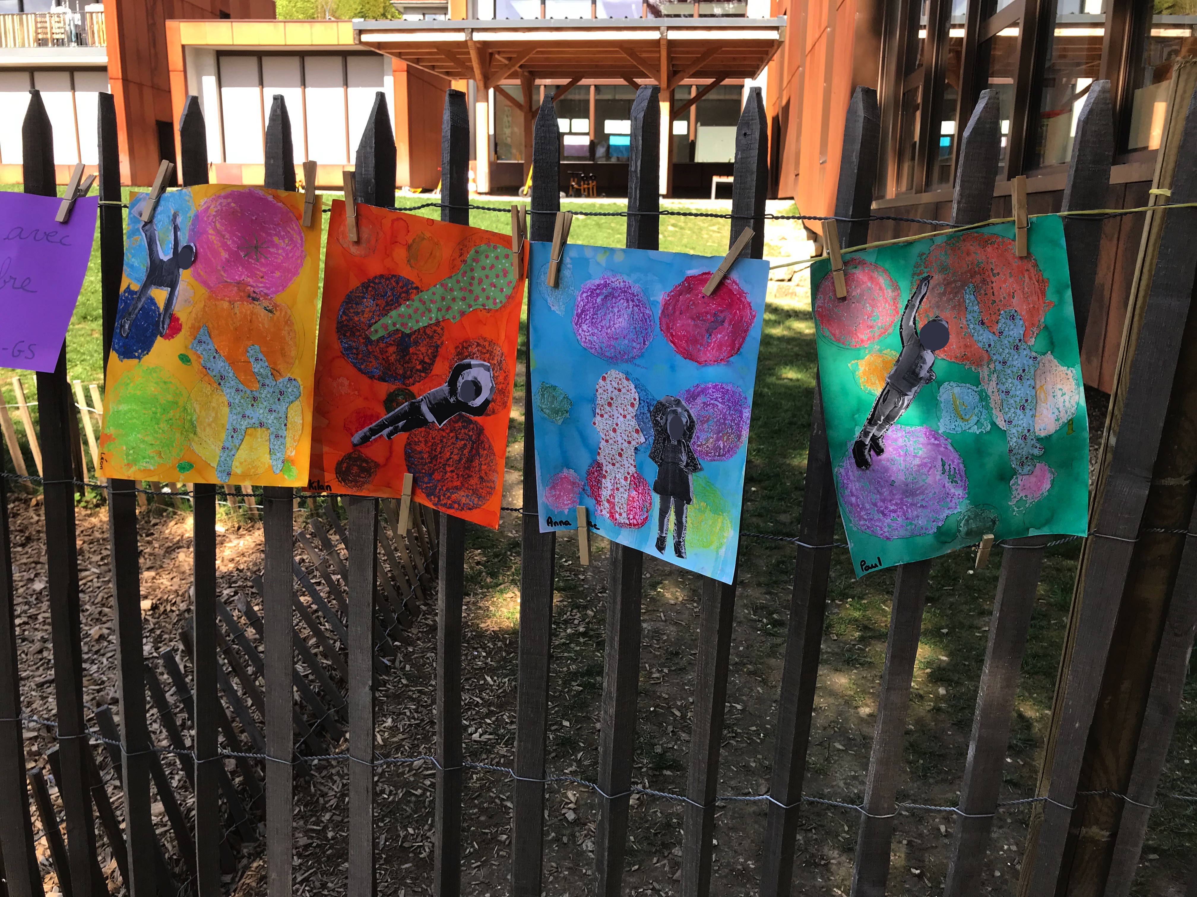 Le 14 avril 2022, toute l'école a exposé sa grande lessive sur le thème "Ombres portées".