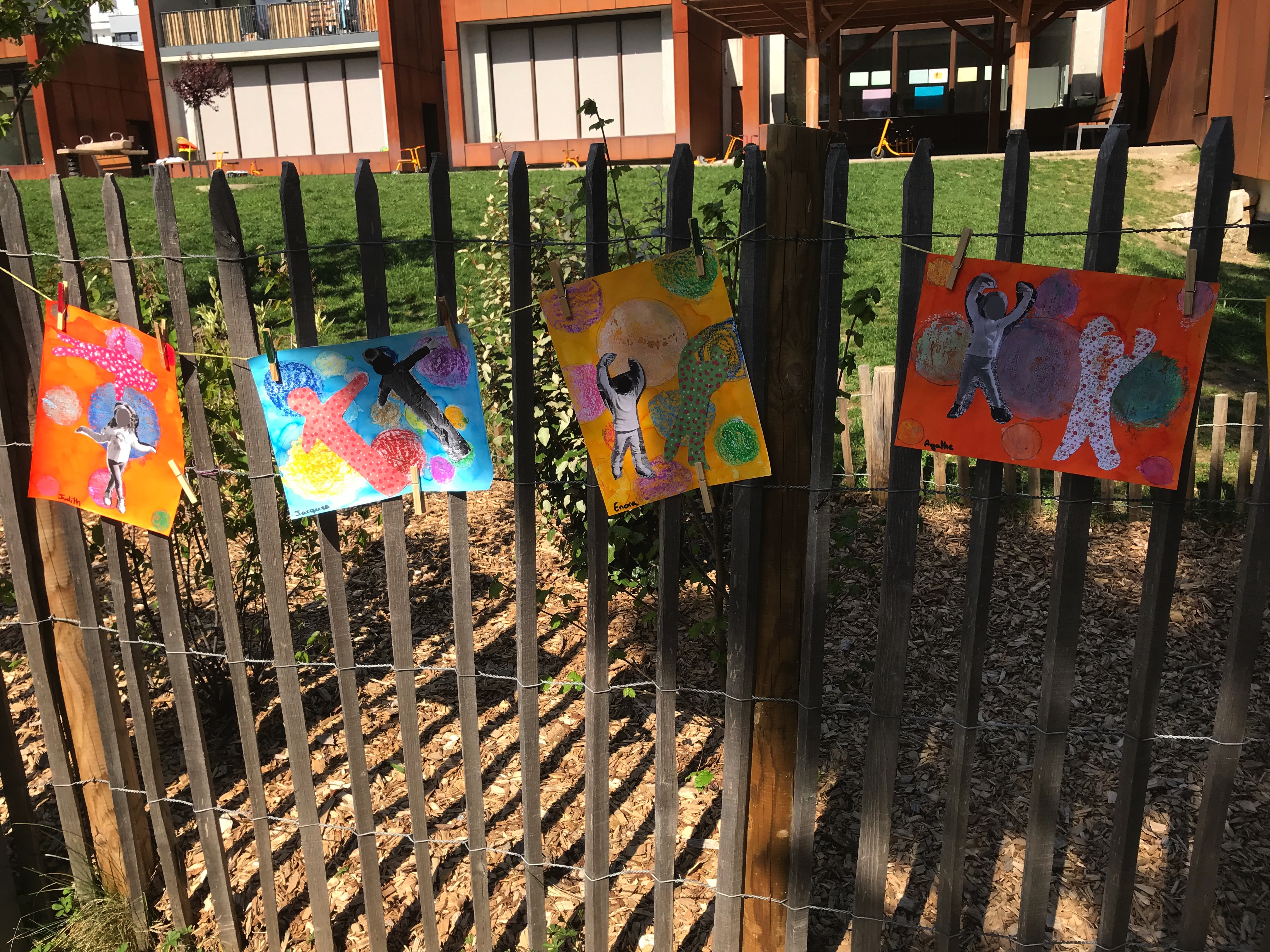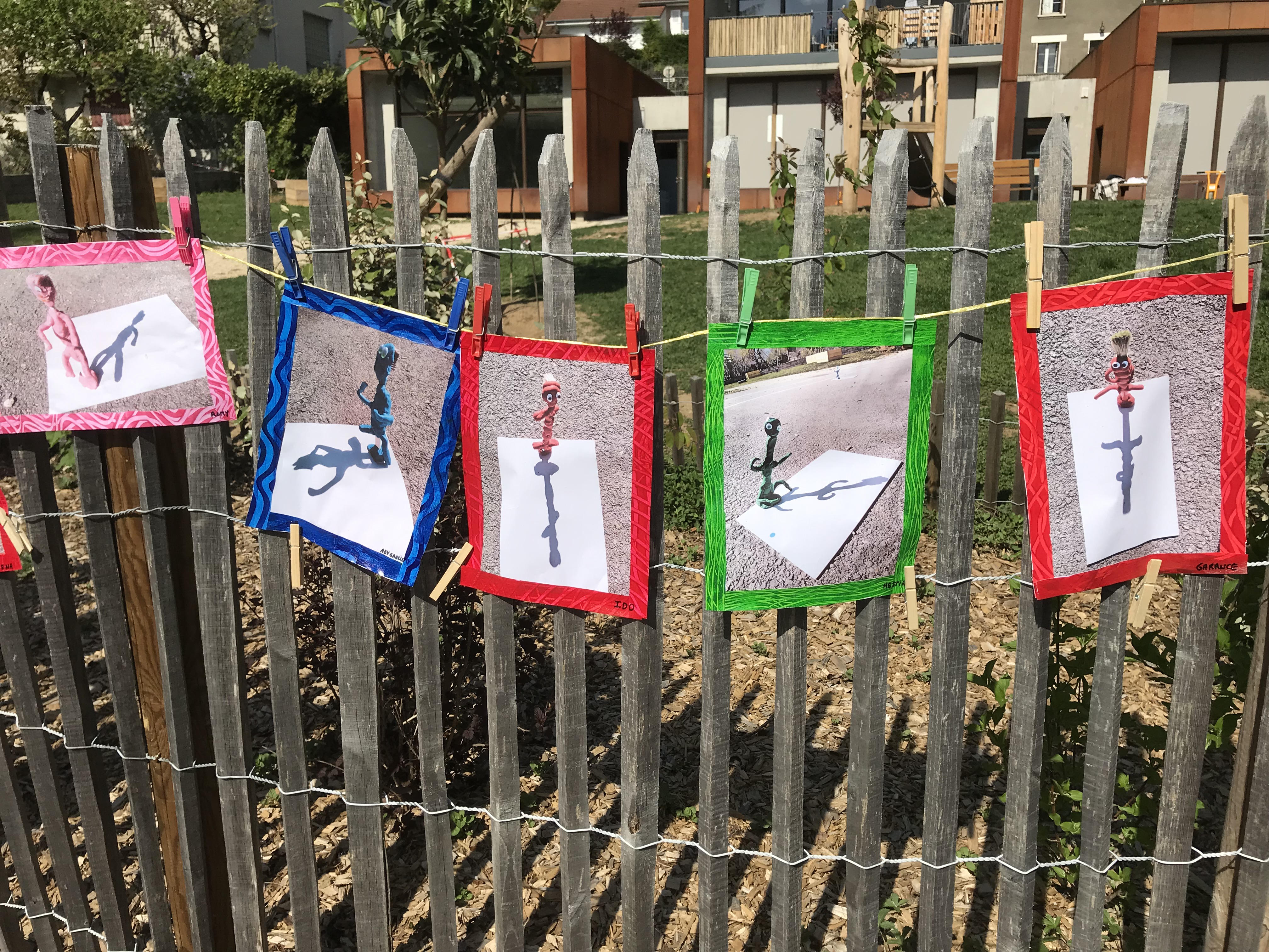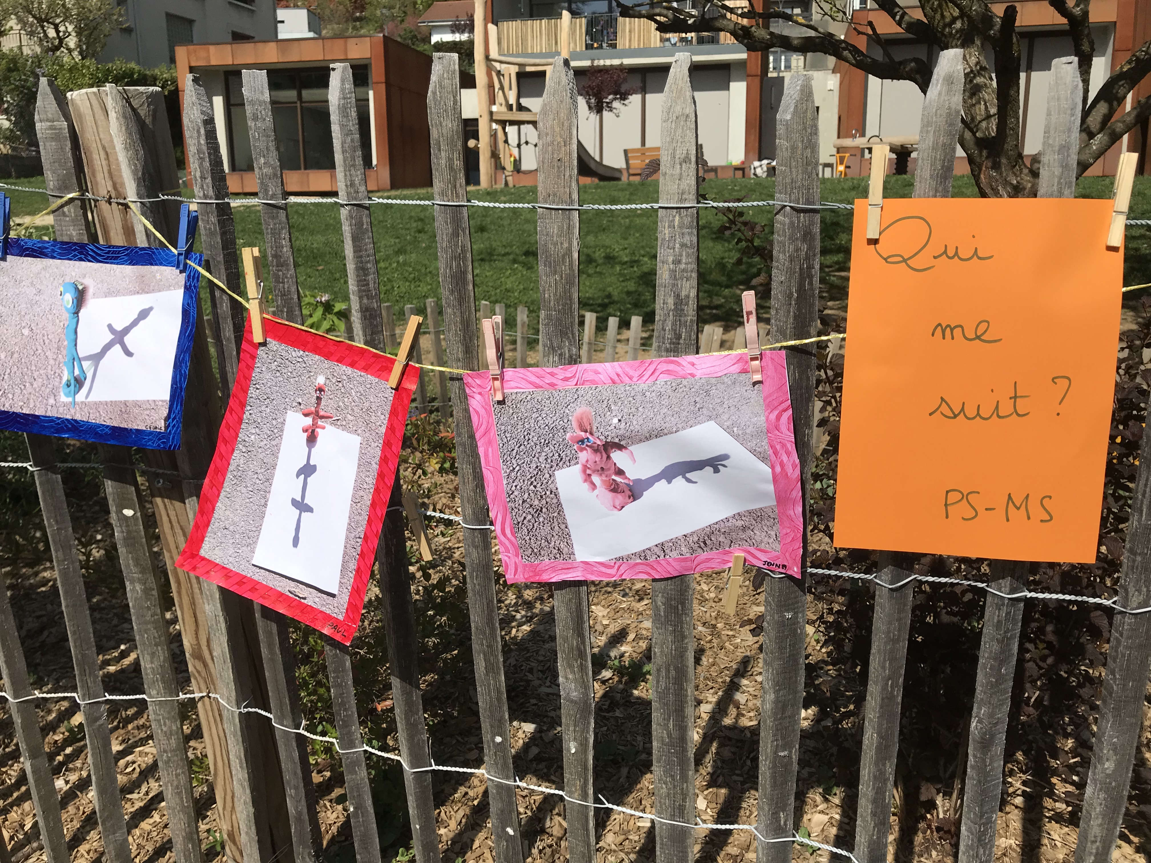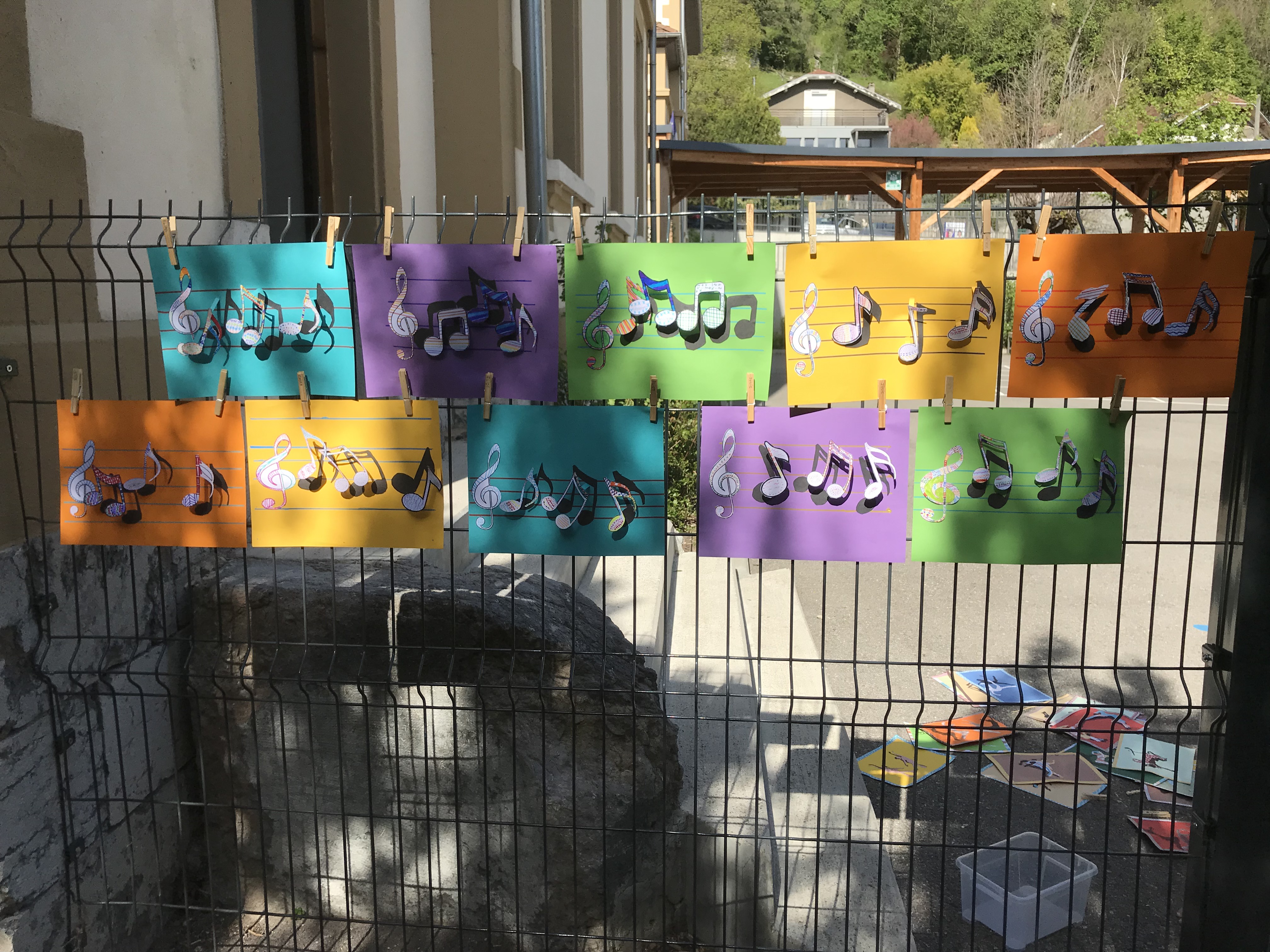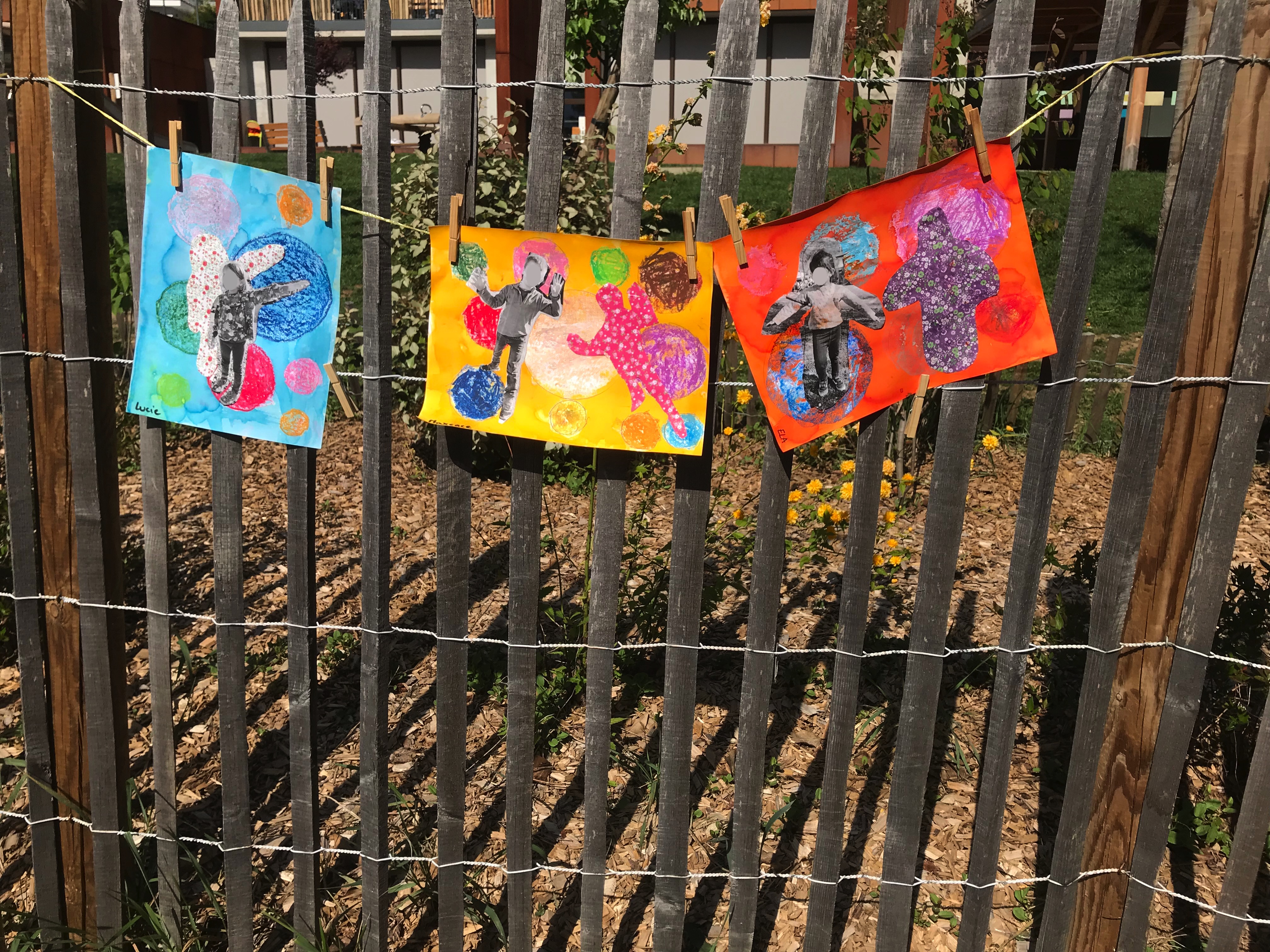 Le 14 avril 2022, toute l'école a exposé sa grande lessive sur le thème "Ombres portées".