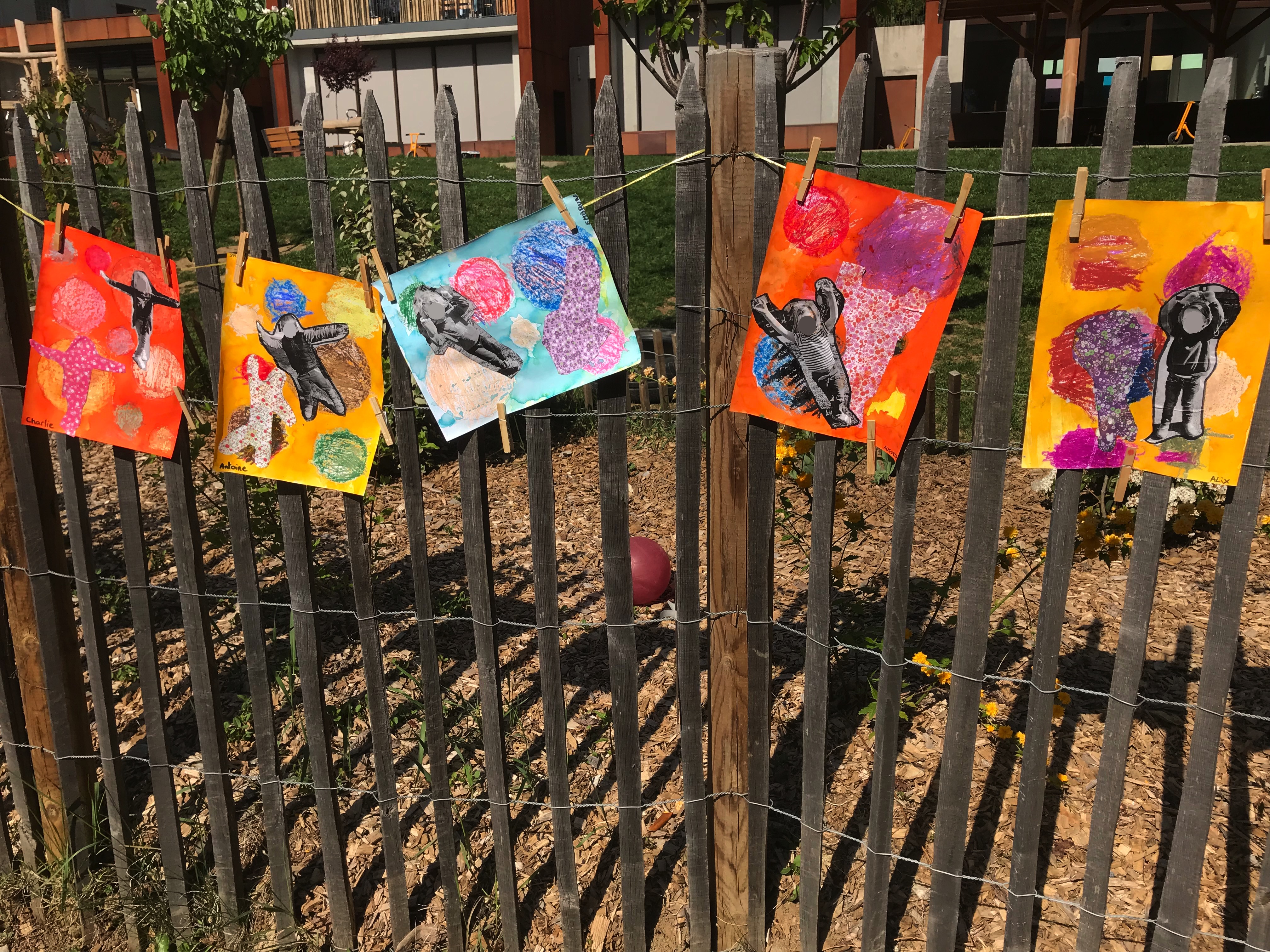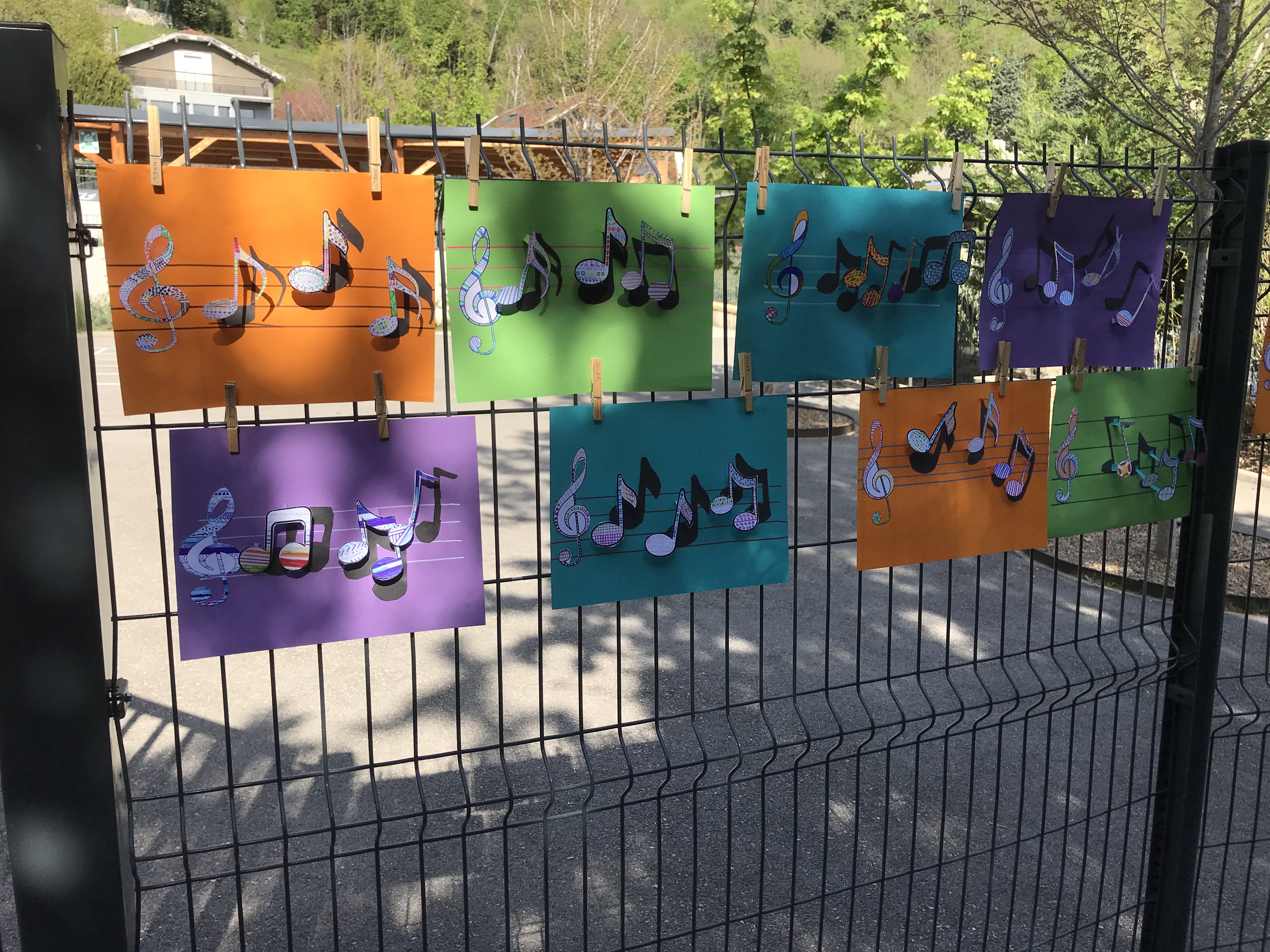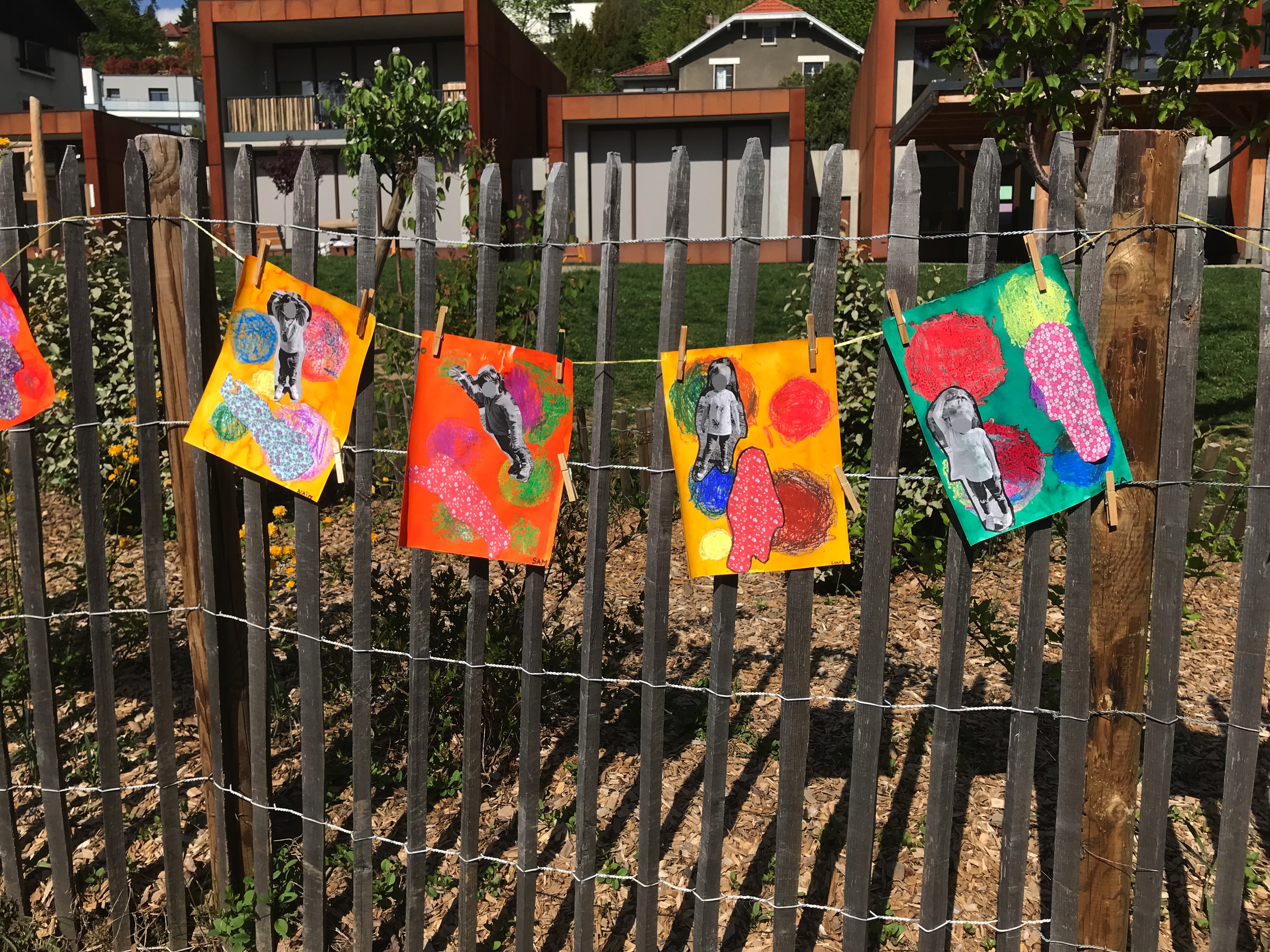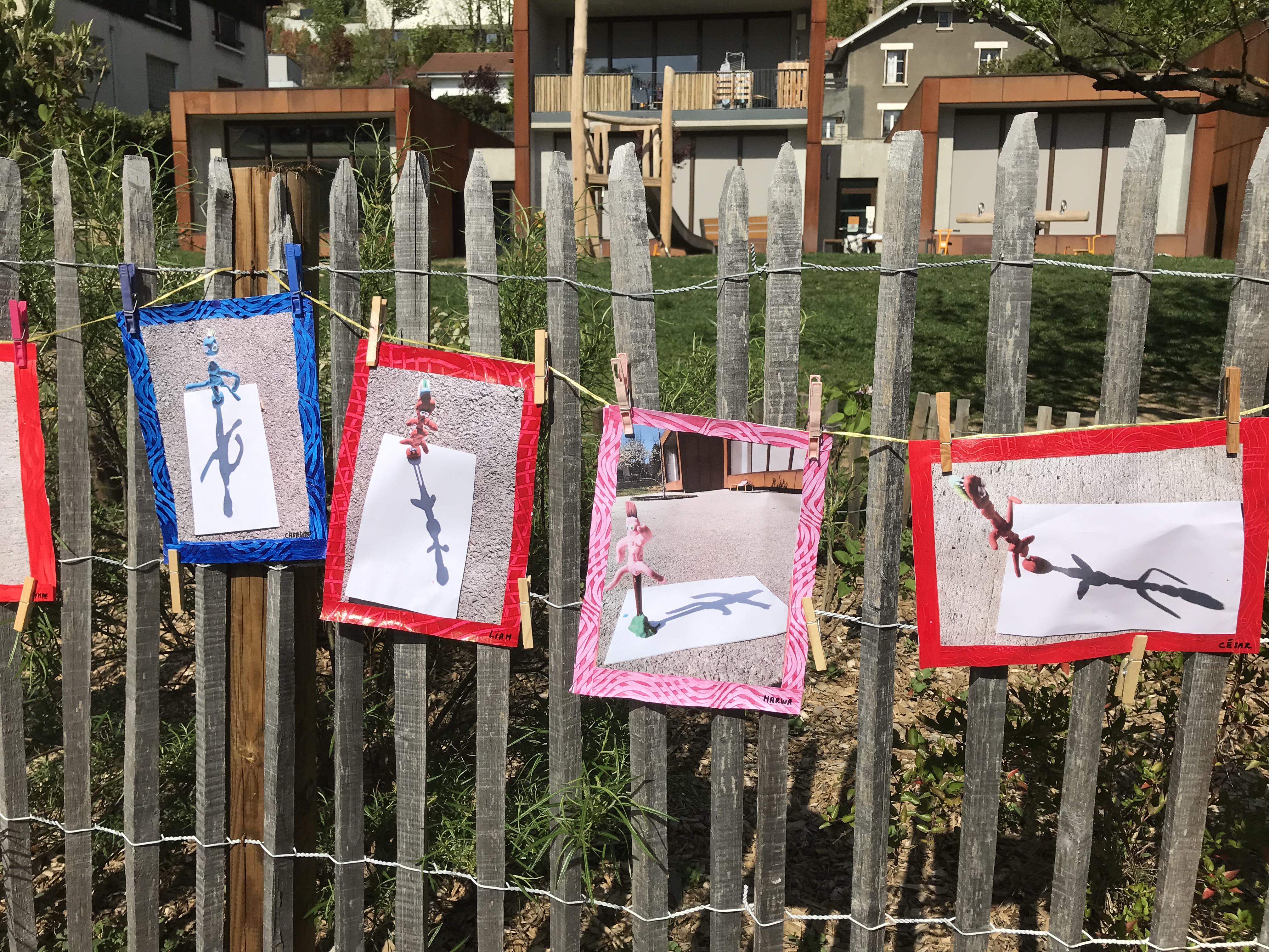 Le 14 avril 2022, toute l'école a exposé sa grande lessive sur le thème "Ombres portées".
