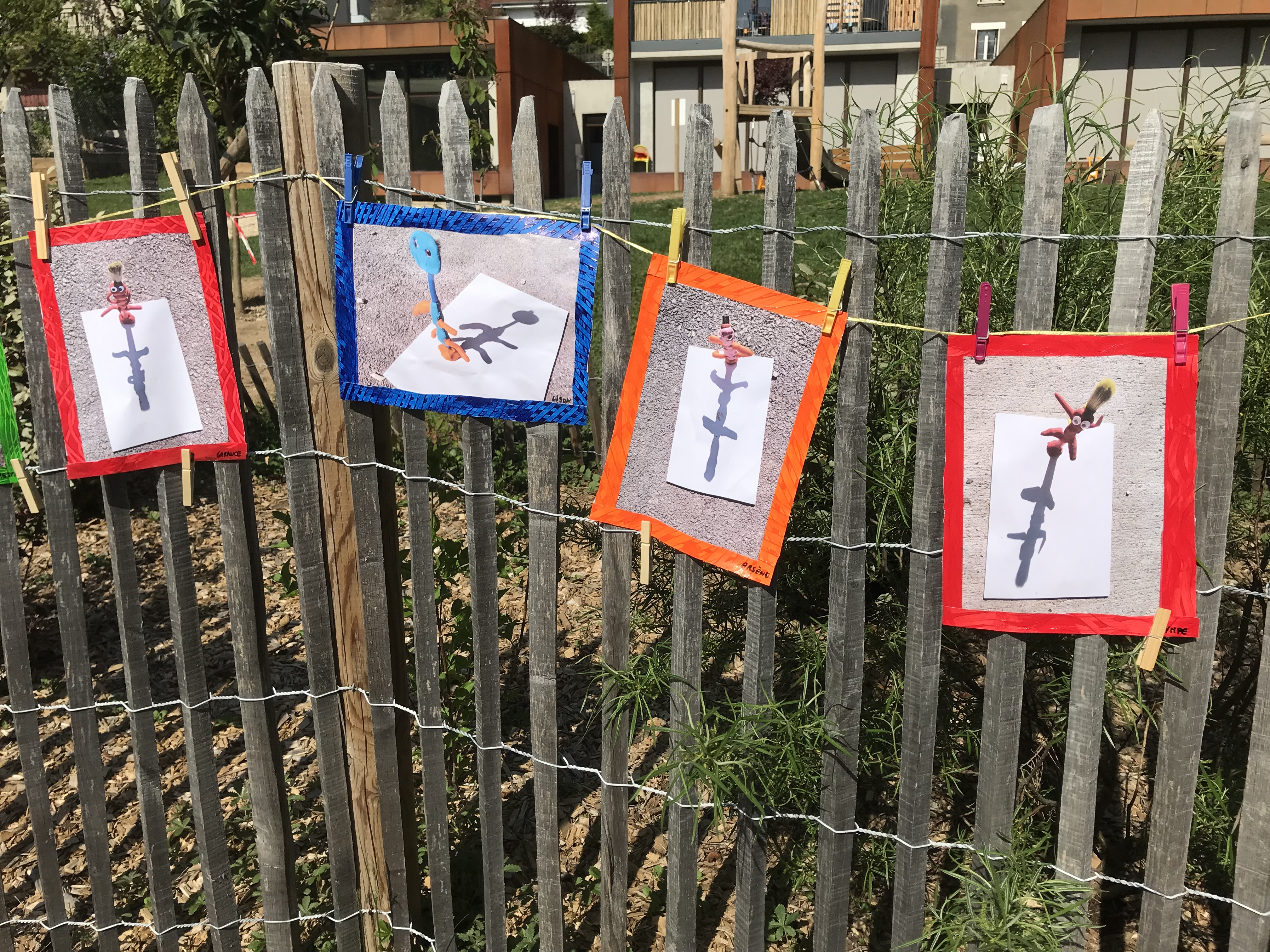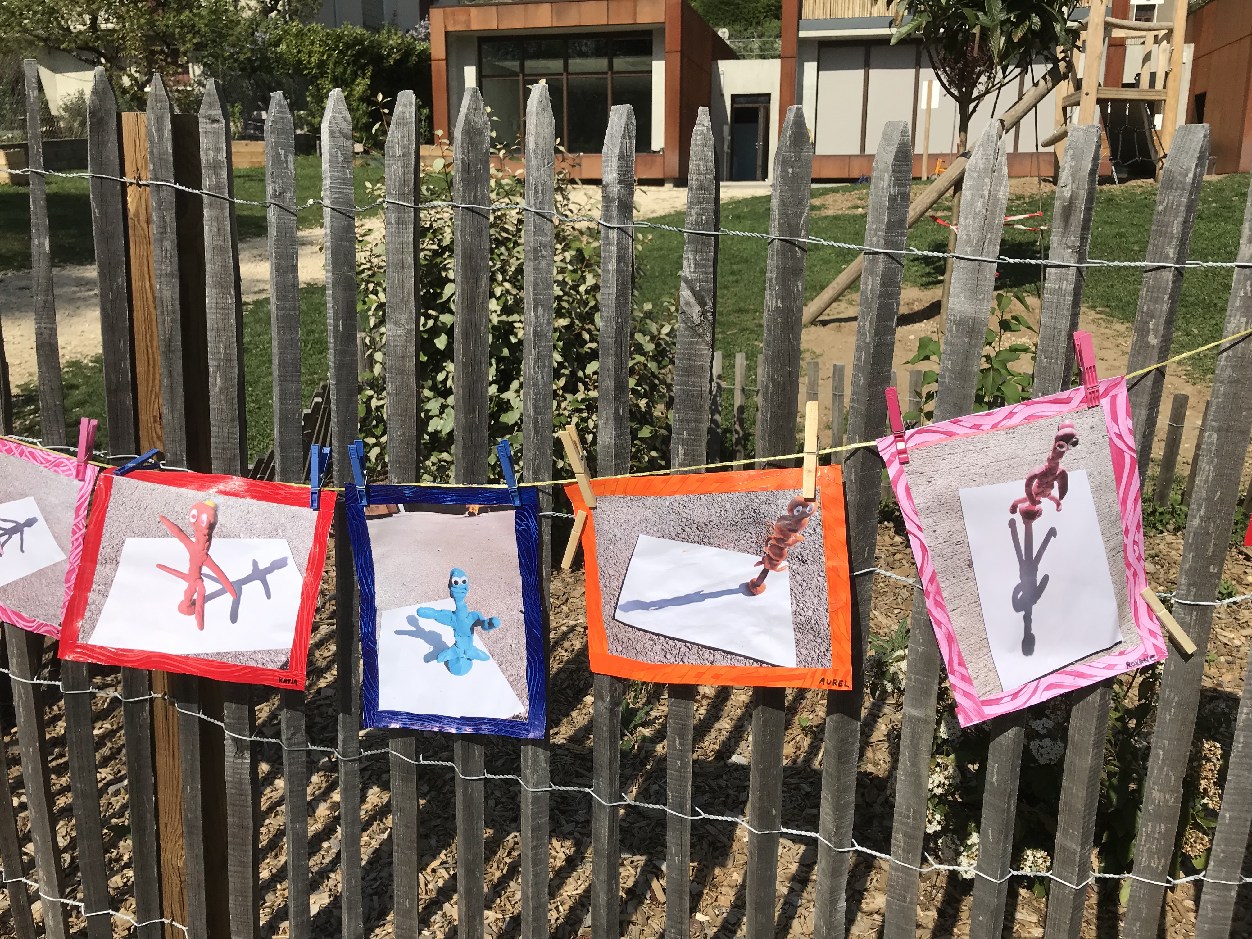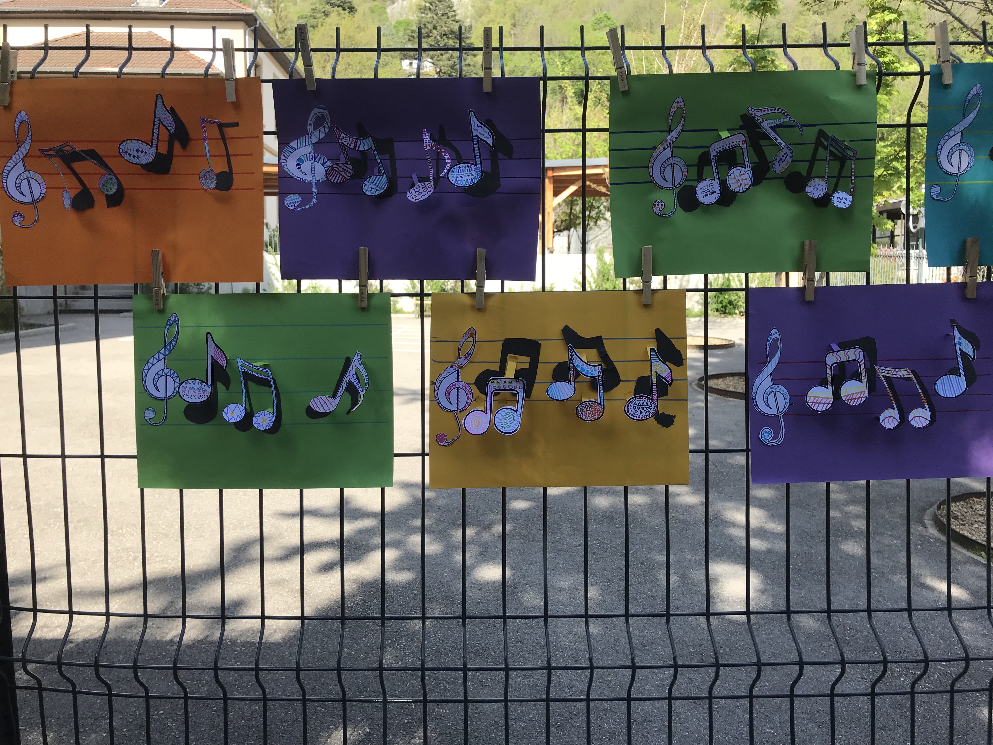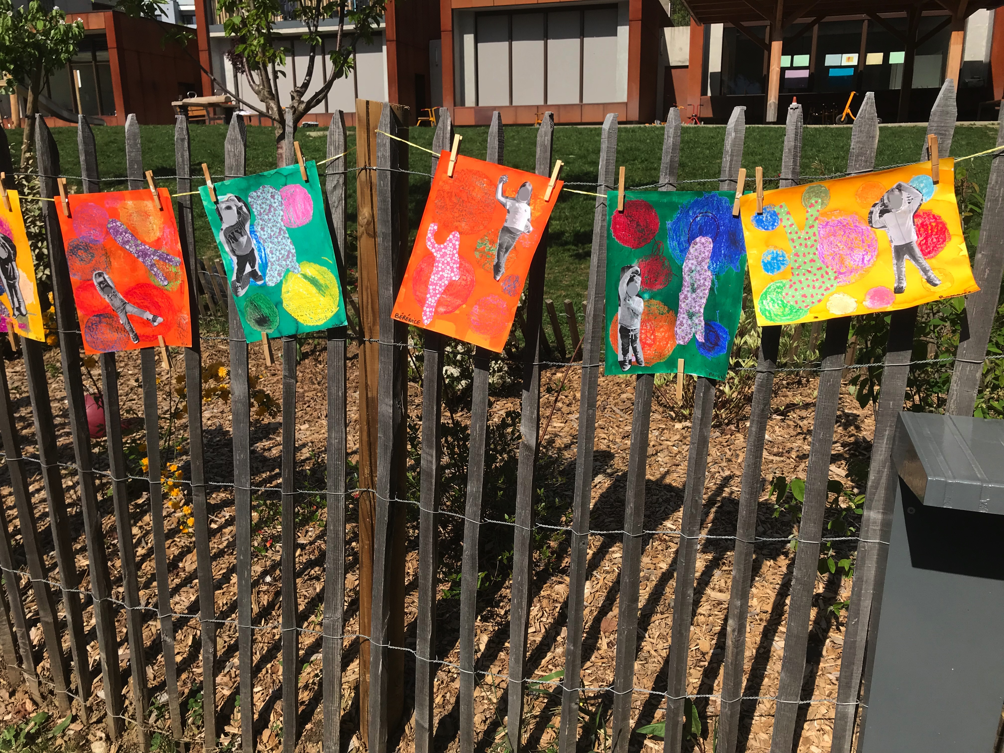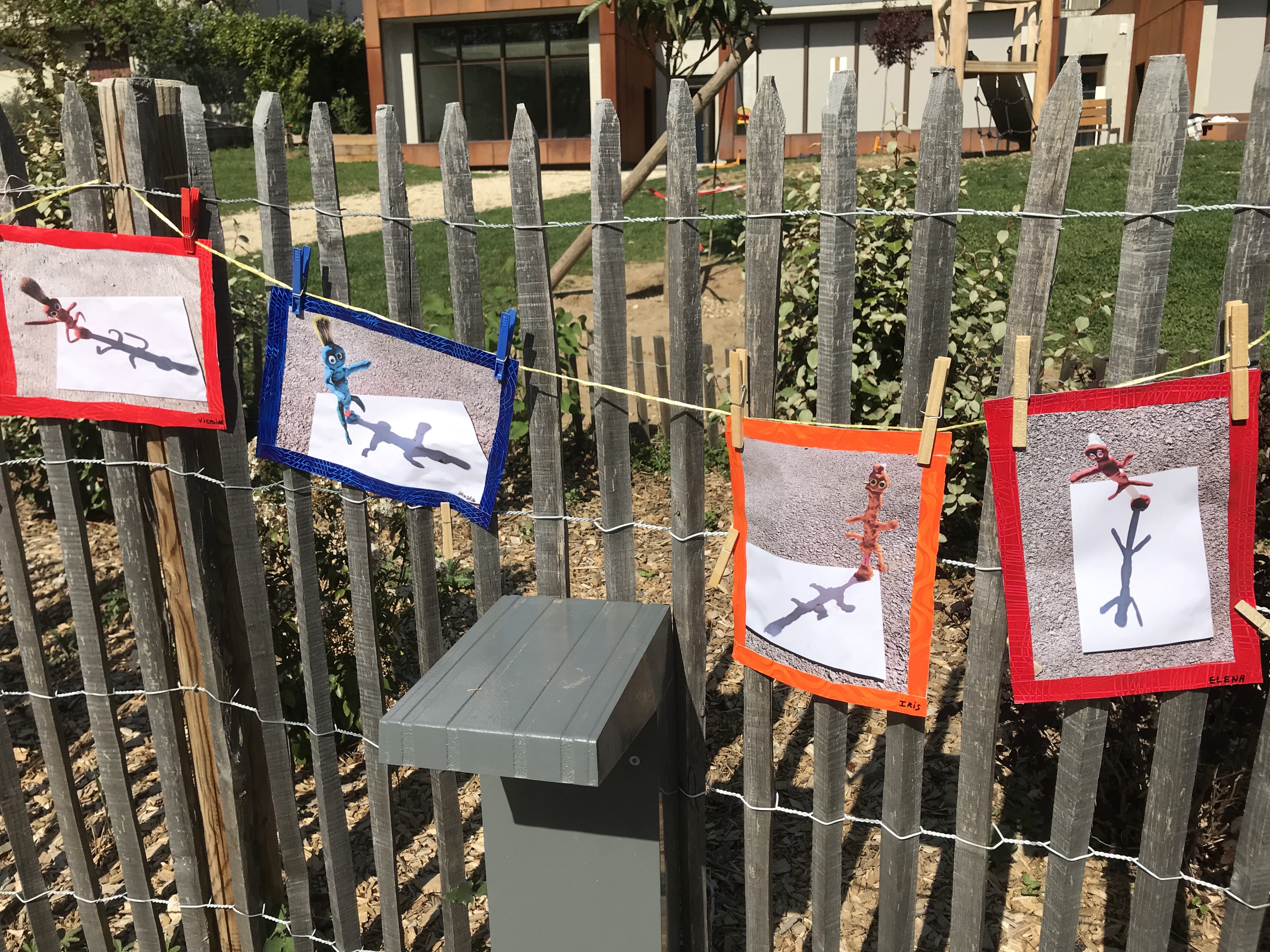 Le 14 avril 2022, toute l'école a exposé sa grande lessive sur le thème "Ombres portées".