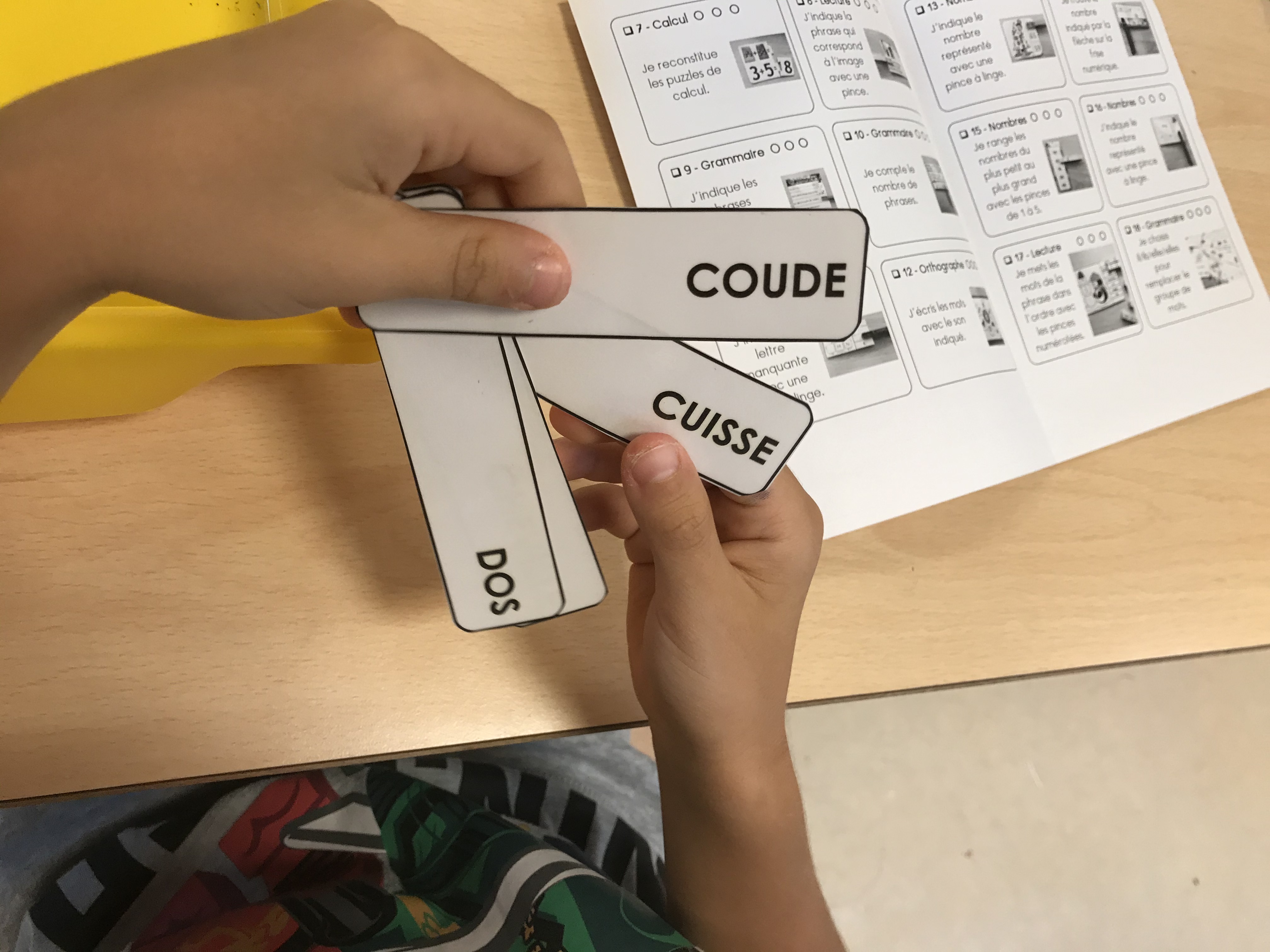 En anglais, nous avons appris le nom d'objets de la classe et des consignes. Nous avons fait des jeux et nous avons écouté une chanson.