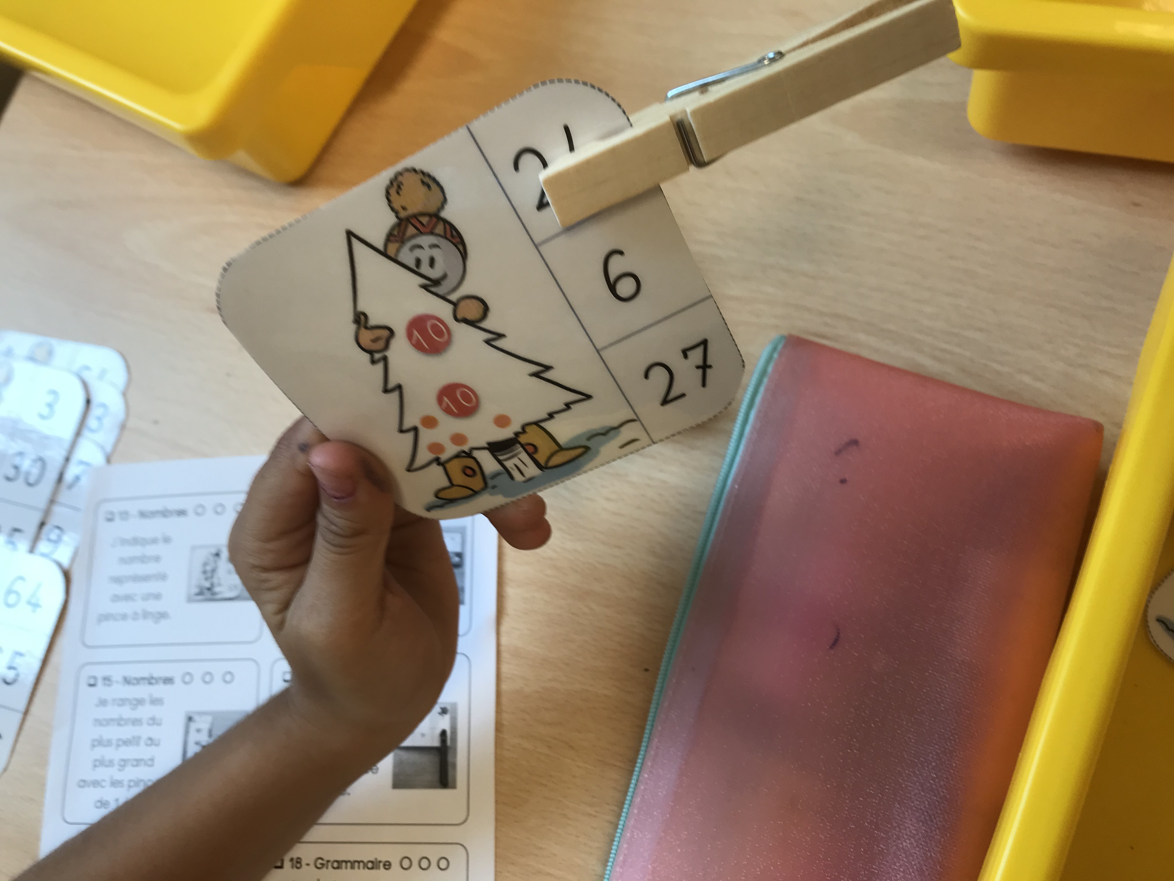 Pendant ce temps, la maîtresse aide ceux qui ont besoin de retravailler quelque chose (nombres, lecture) en faisant un jeu ou des révisions en petit groupe.
